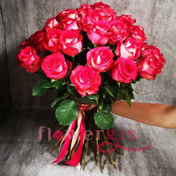 Классический большой букет под ленту. Всеми любимый букет стандартно-классического исполнения, превосходно подойдет любой девушке, где бы она не находилась